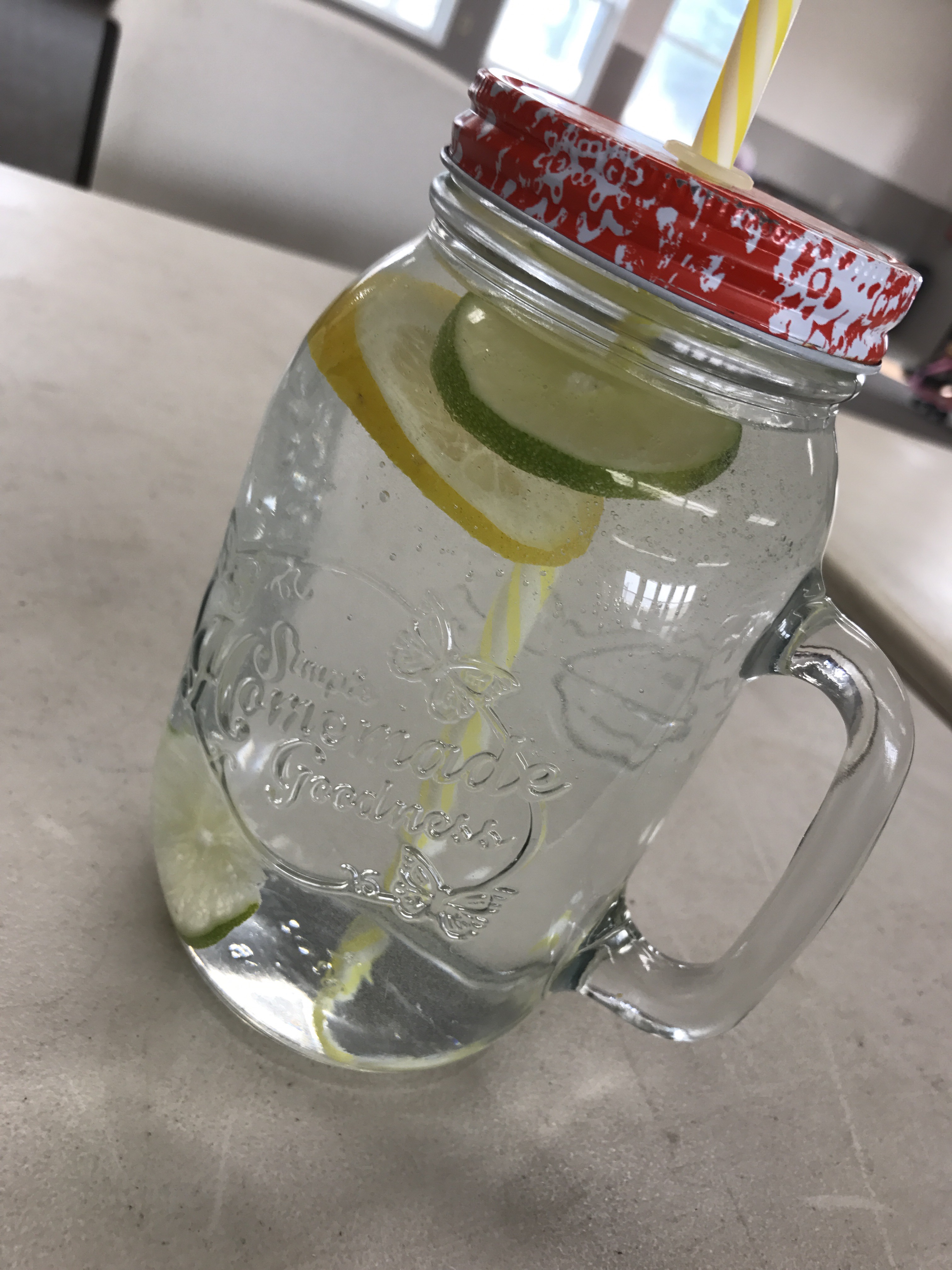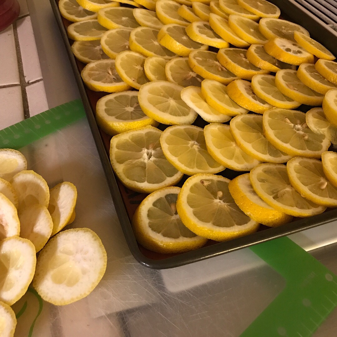 I also love my water with lemon each day and learned that sliced lemons could be frozen and then used in water and they look fresh cut every time.