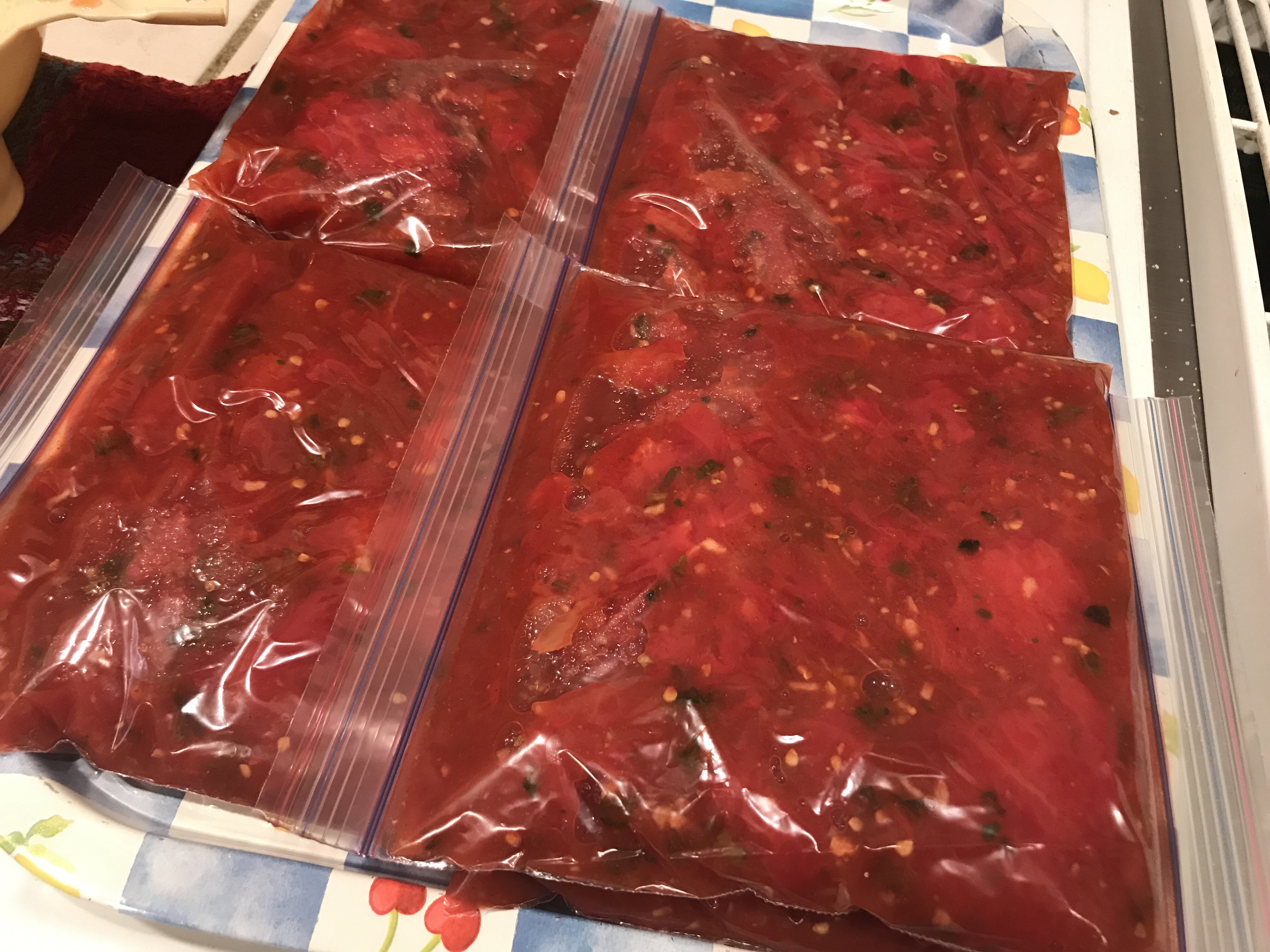 The other night I finally made my salsa with 1/2 garden tomatoes and the other half 3 cans of organic diced tomatoes from Costco.