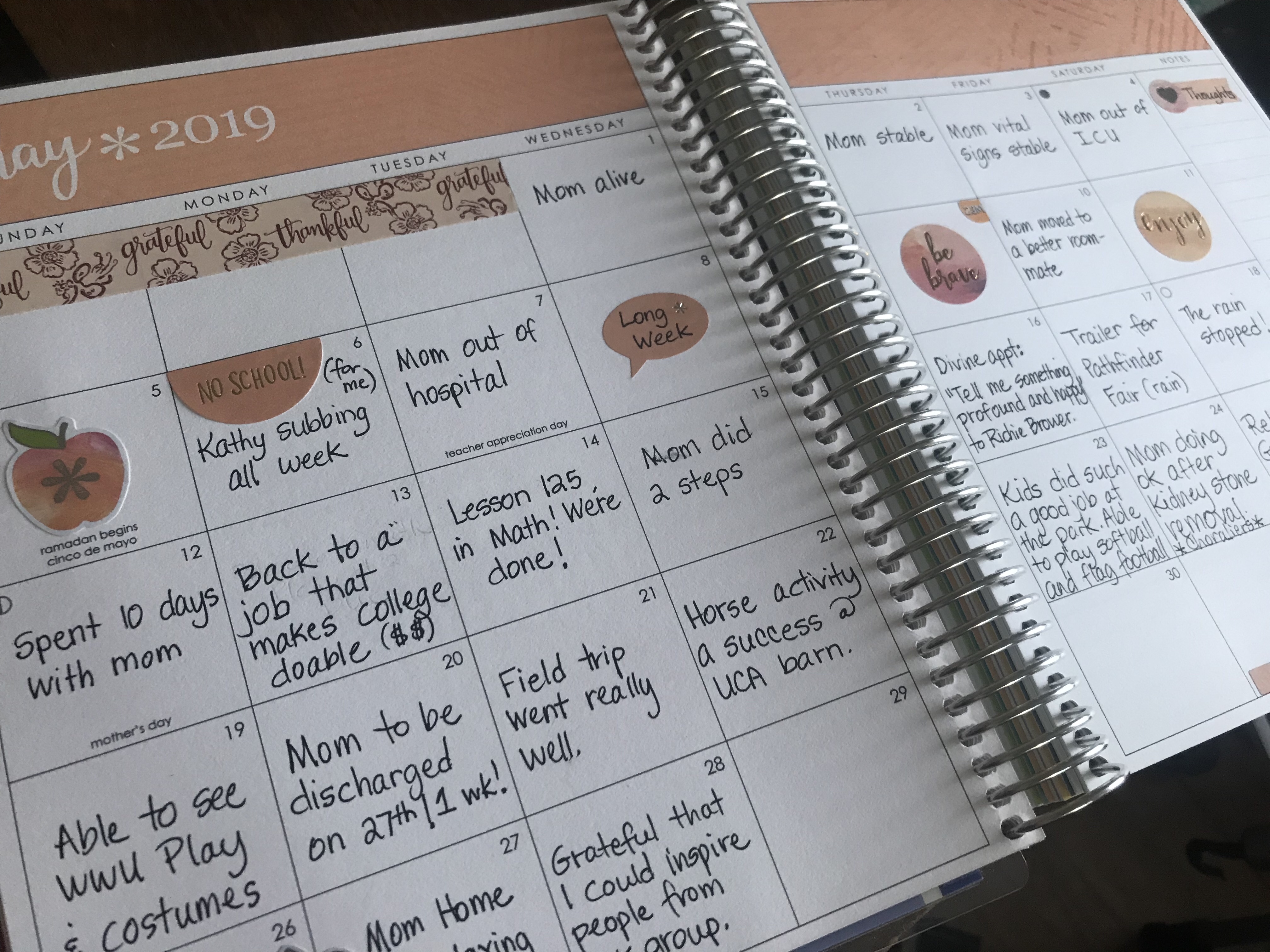 First, it’s an Erin Condren planner. The one that I am using is the colorful vertical life planner. It has both a monthly layout and a daily/weekly layout. I love using the monthly layout as a gratitude journal.